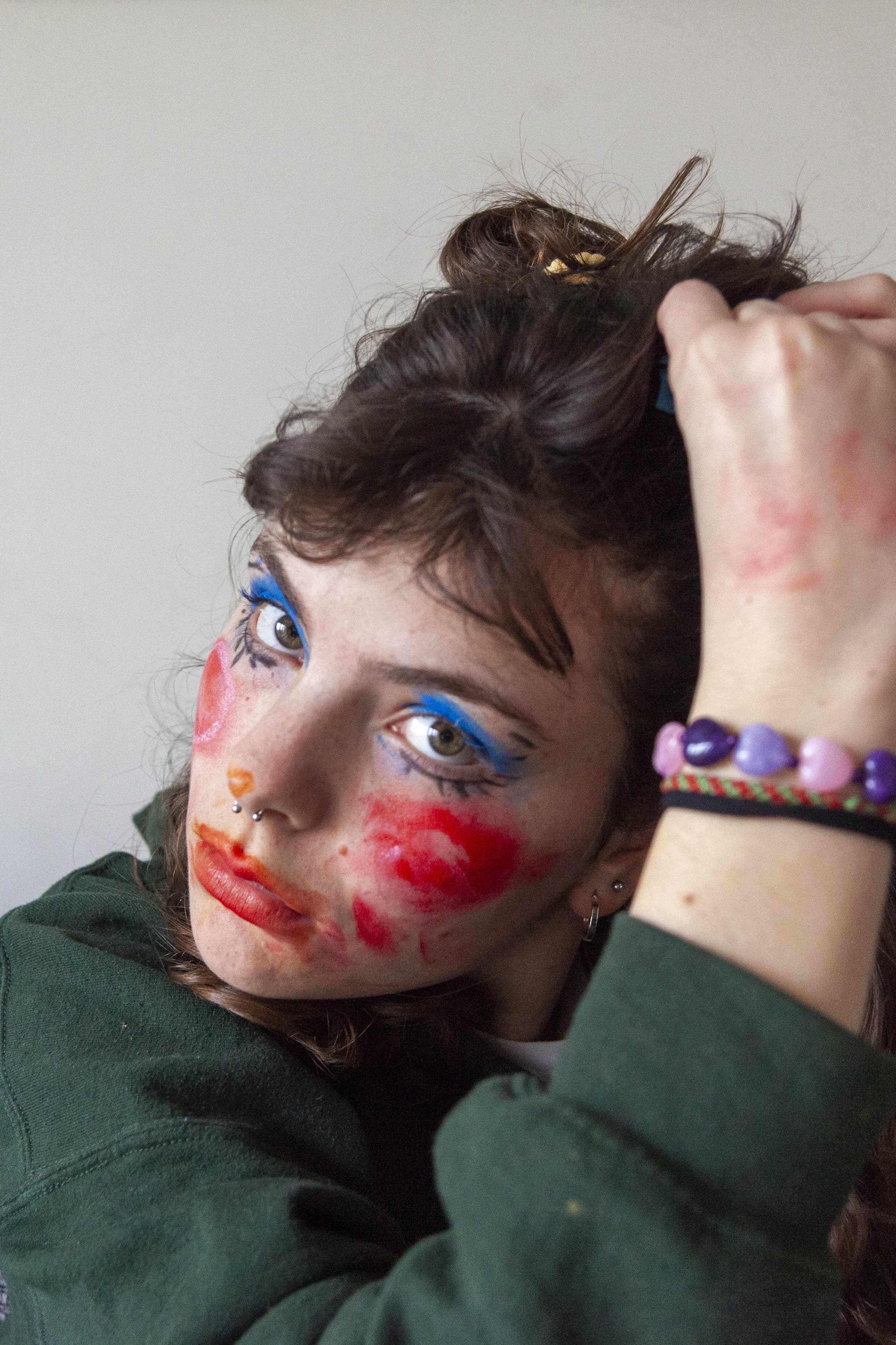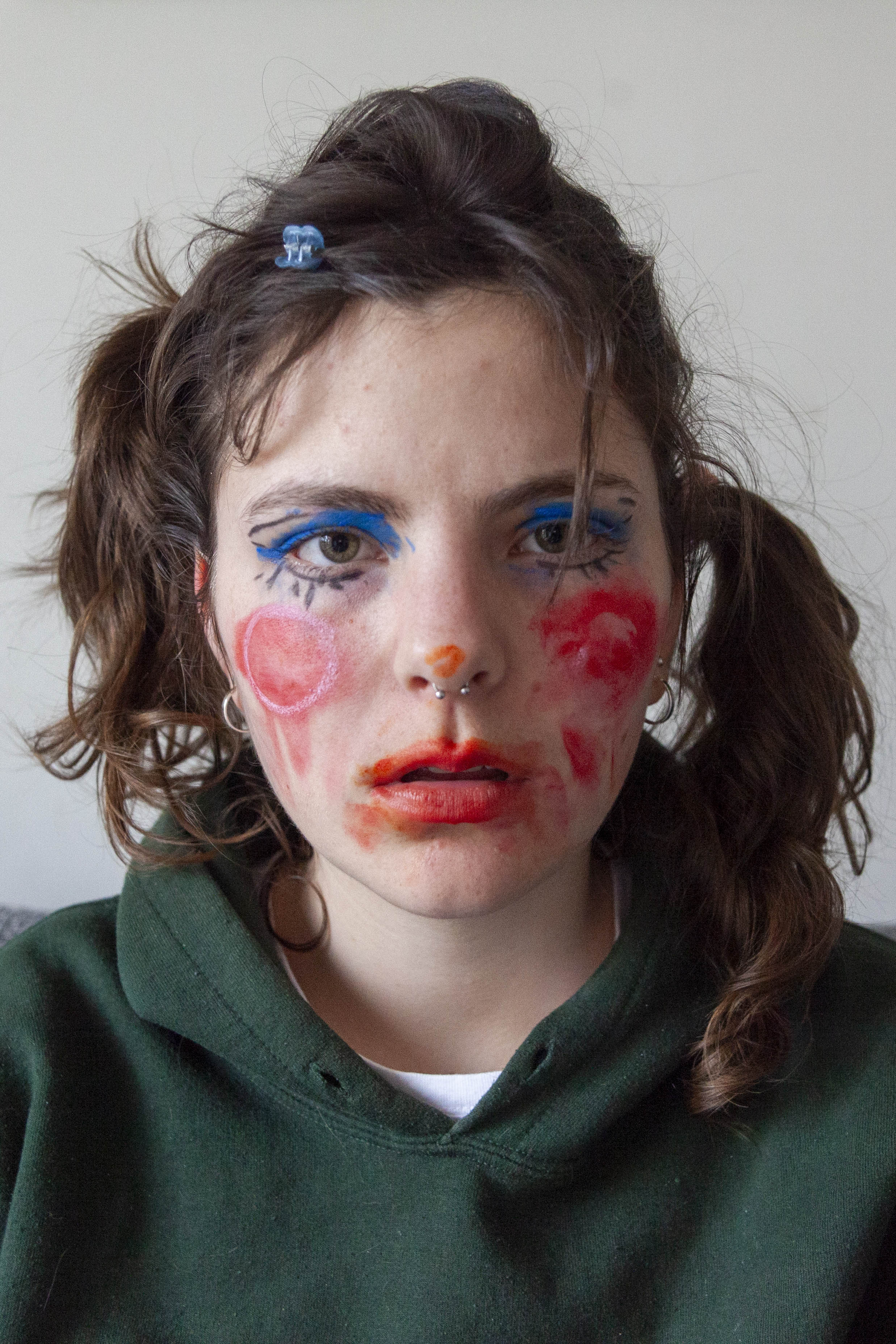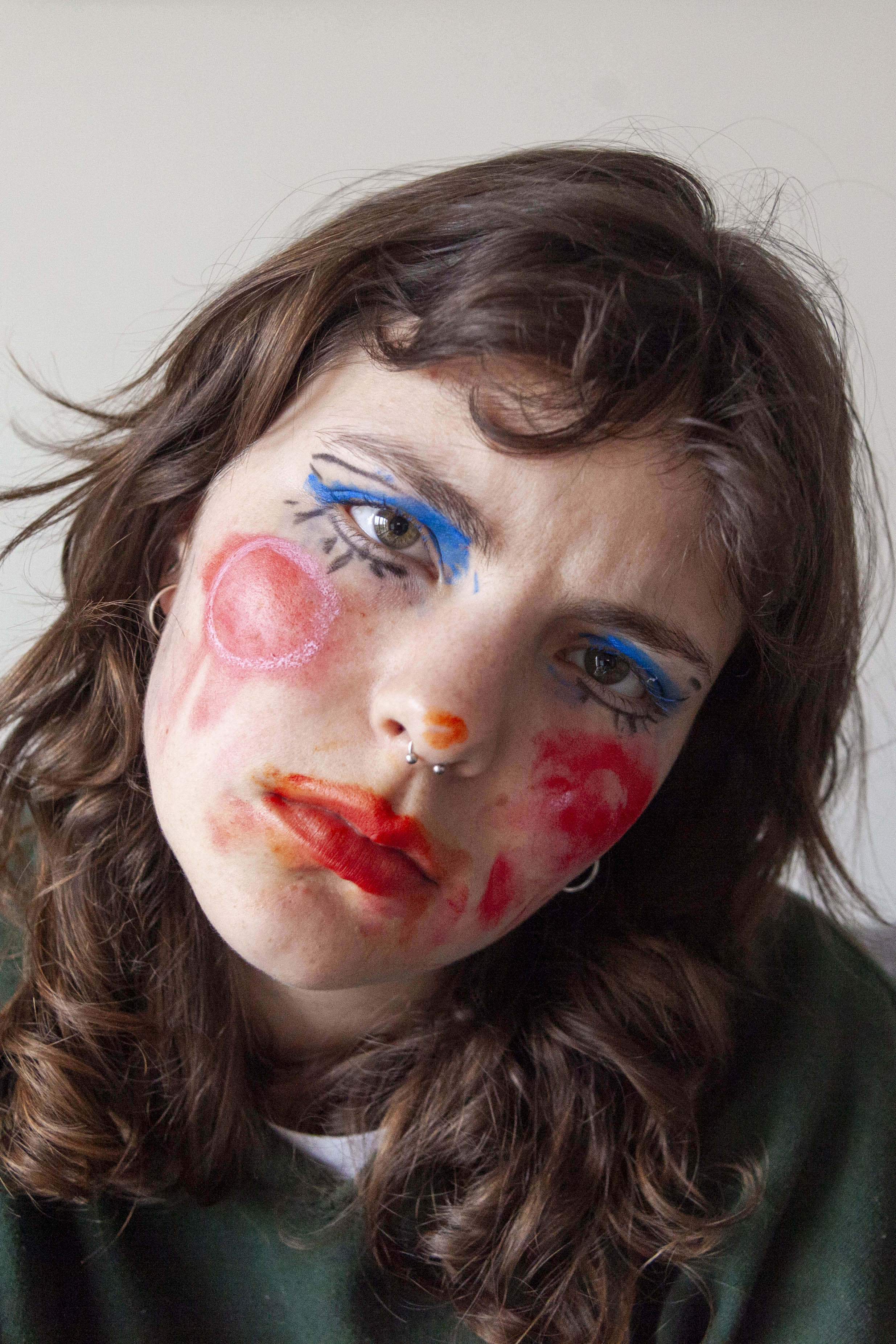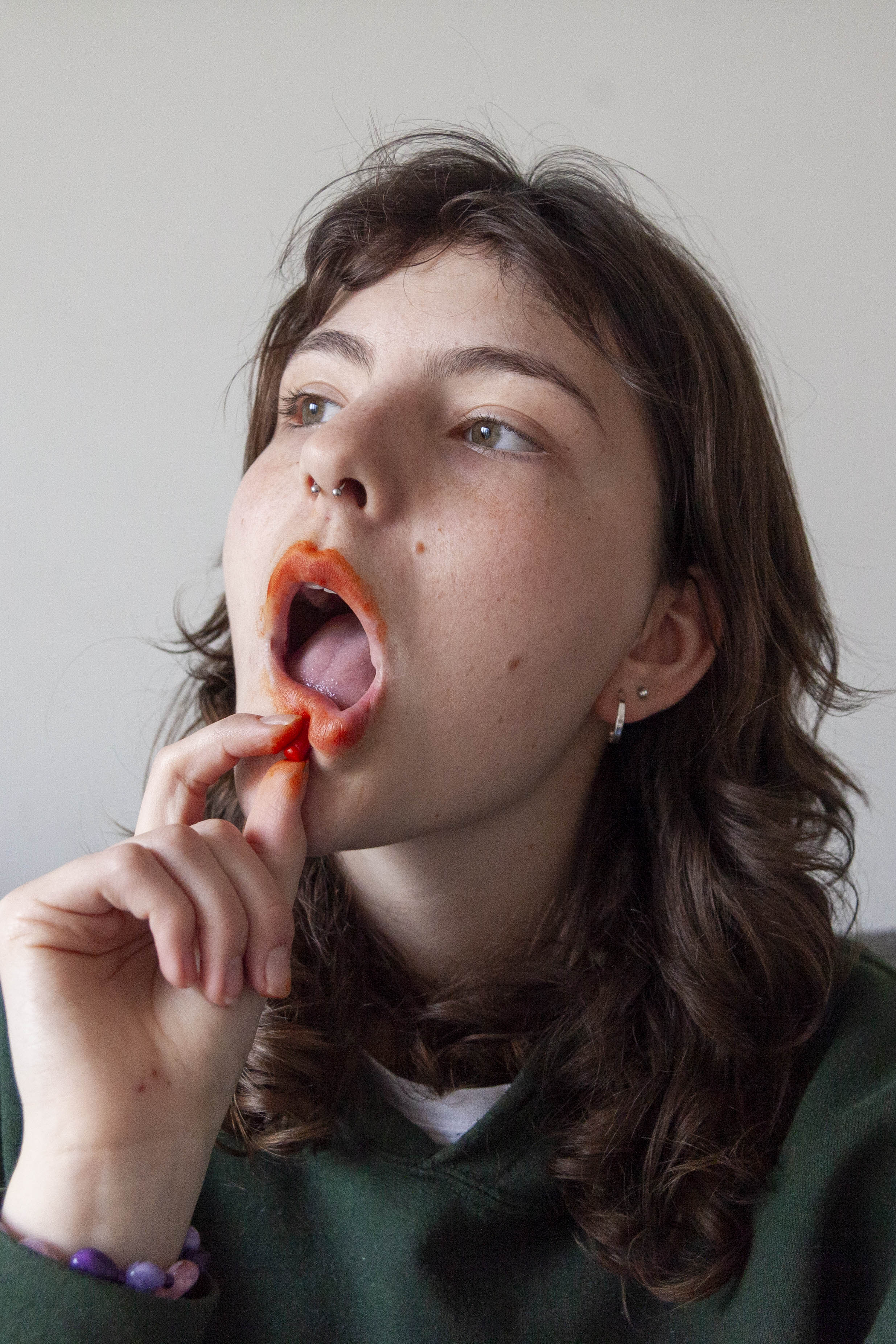 „Ze is zeker ongesteld, Trut, Mannenwerk” en nog veel meer termen, het zijn allemaal uitdrukkingen die je dagelijks hoort. Ik ben uitgegaan van mijn fotoserie waarin ik mezelf heb geportretteerd. In de serie wilde ik laten zien dat vreemd gedrag van vrouwen niet wordt gerespecteerd. Vrouwen mogen geen fouten maken. Met hulp van een Stanleymes, een schaar en de bovenstaande termen, heb ik mezelf de taak gesteld om deze begrippen zo te isoleren dat ze absurd overkomen. Digitaal heb ik nog typografie toegevoegd.