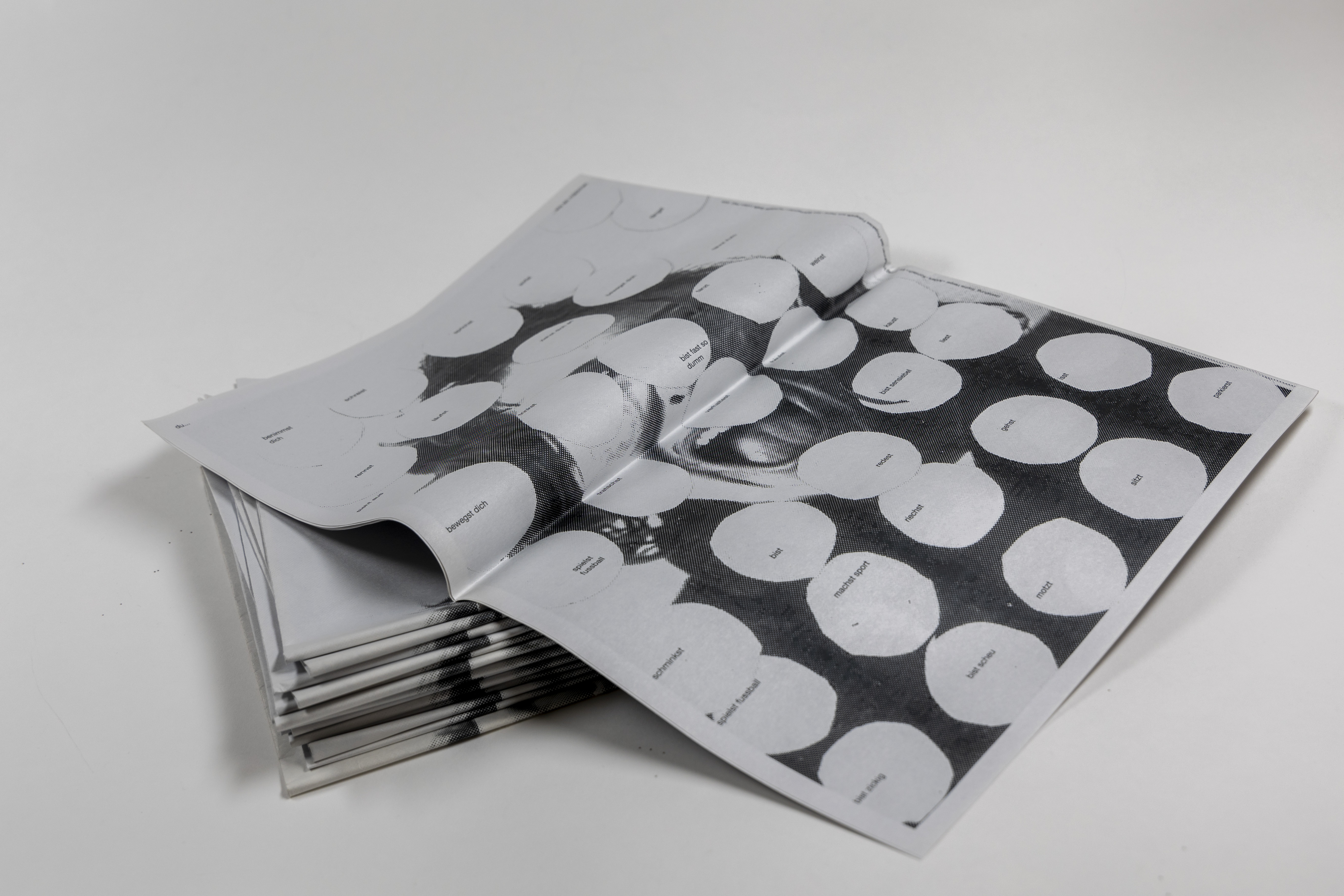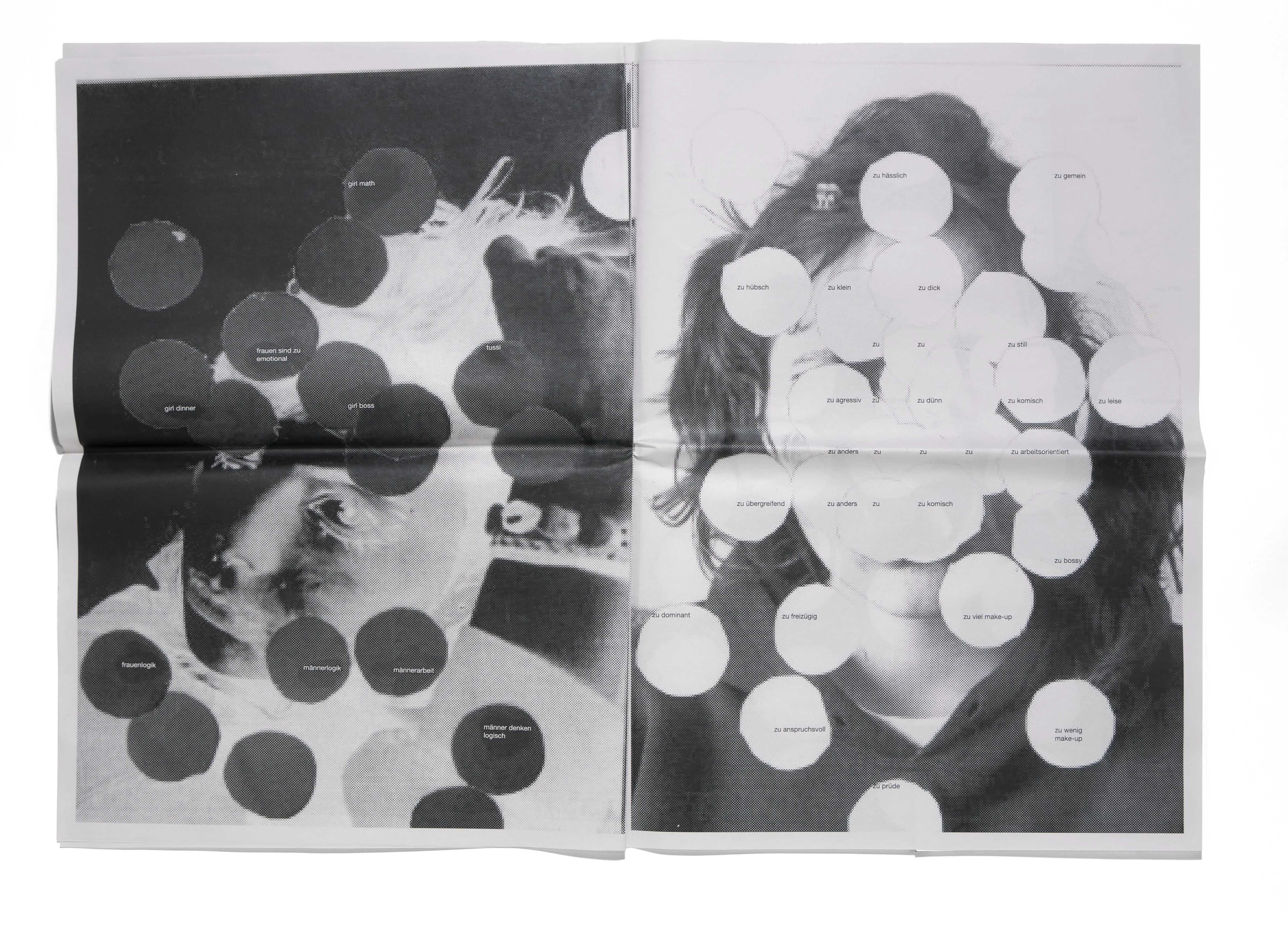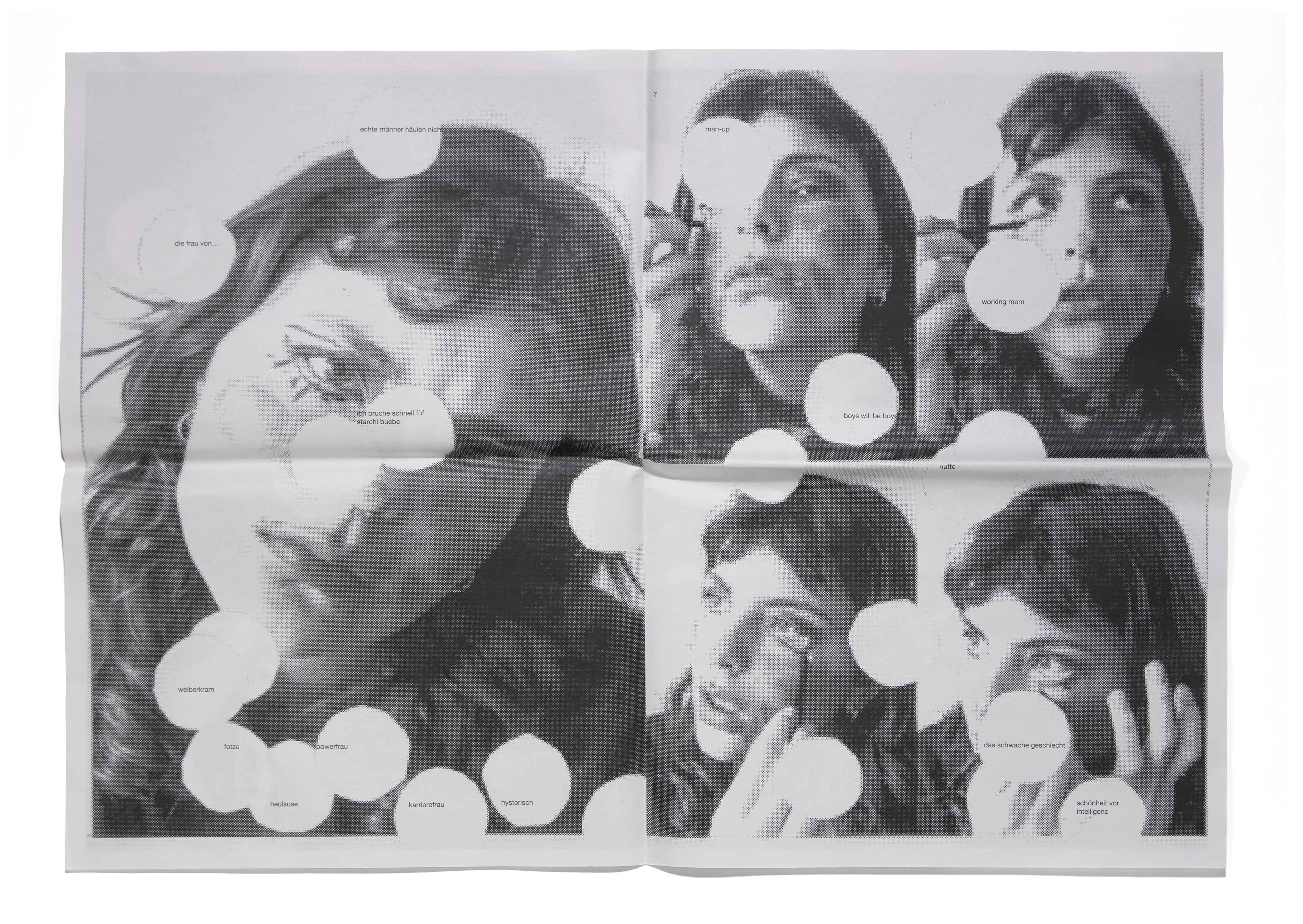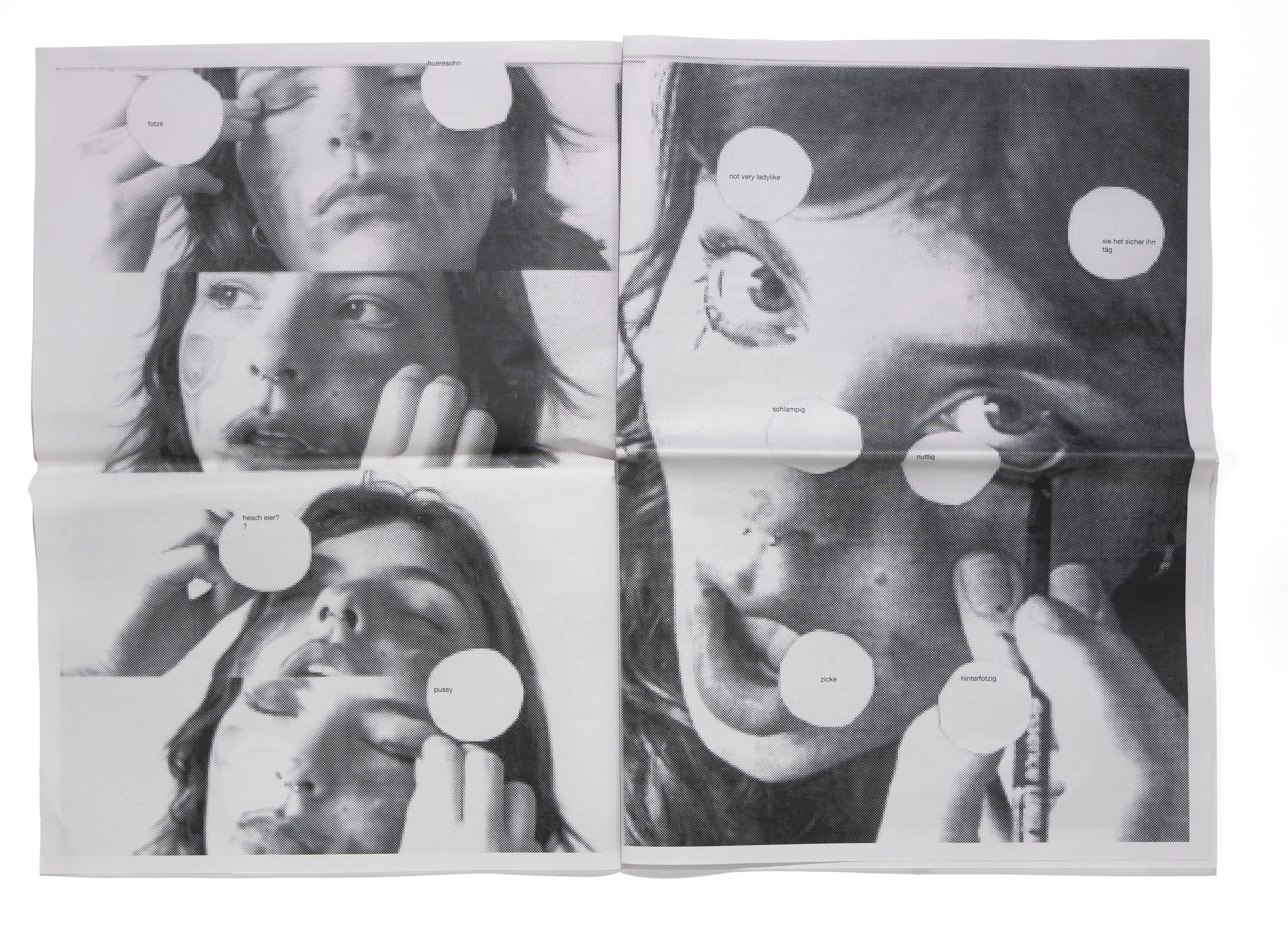 ‘She's probably on her period, bitch, men's work’, and many other phrases are all expressions you hear in everyday life. I started from my photo series, where I portrayed myself. In this series, it was important to me to show that unconventional behavior by a woman is not respected. Women are not allowed to make mistakes. Using a utility knife, scissors and the above-mentioned phrases, I took on the task of isolating these terms to make them appear absurd. I then digitally added typography to complete the work. It was printed like real newspapers.