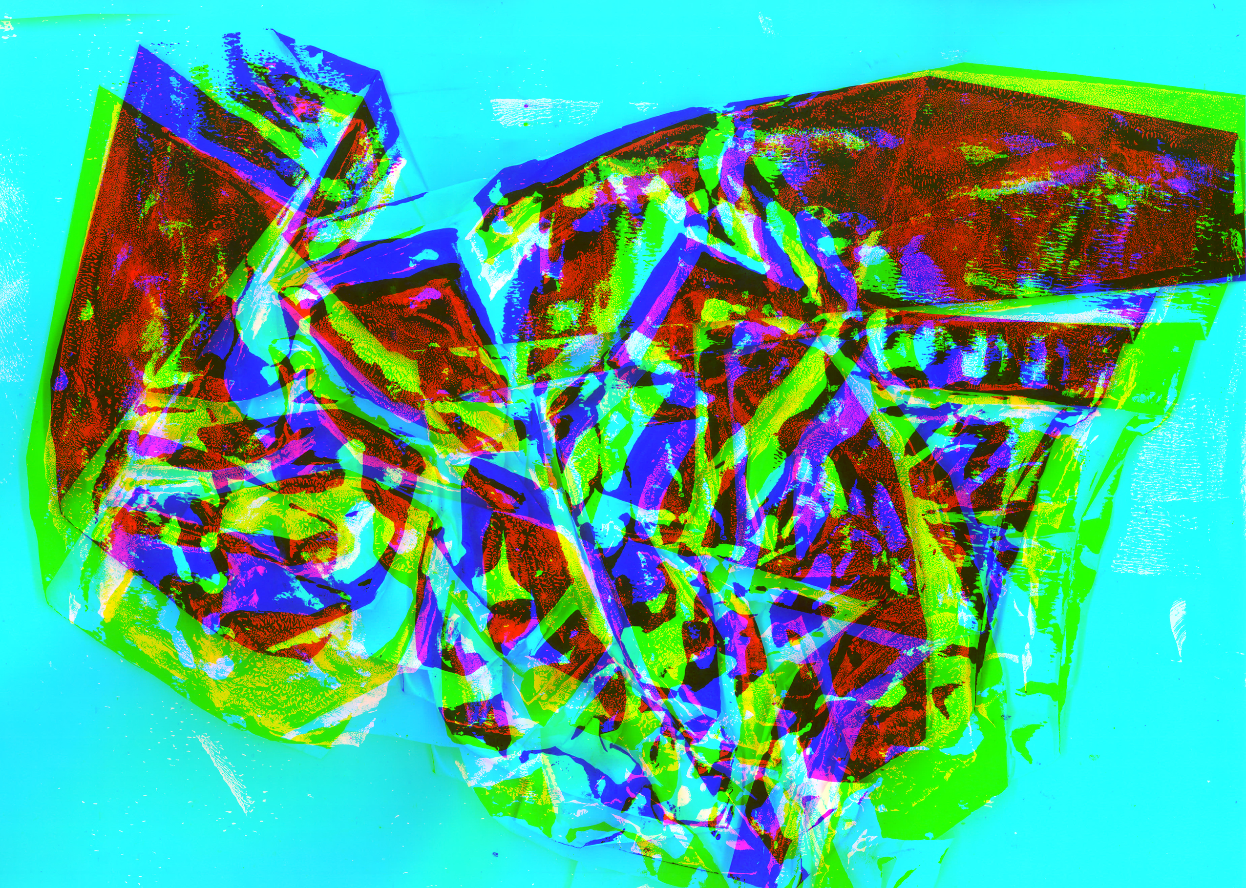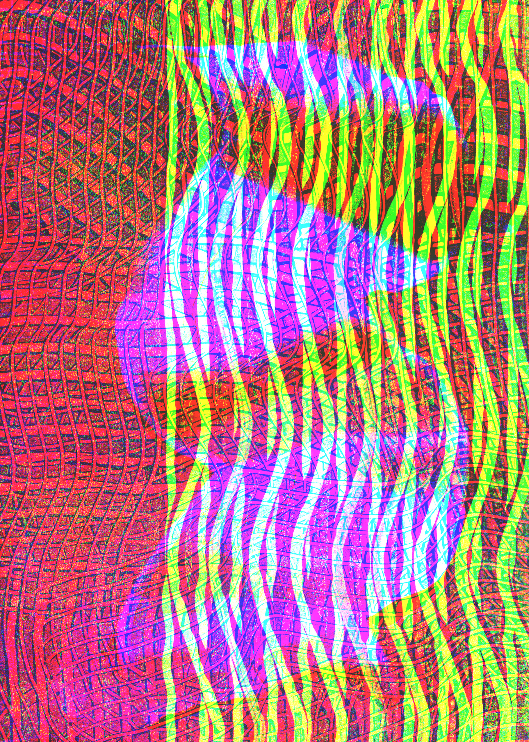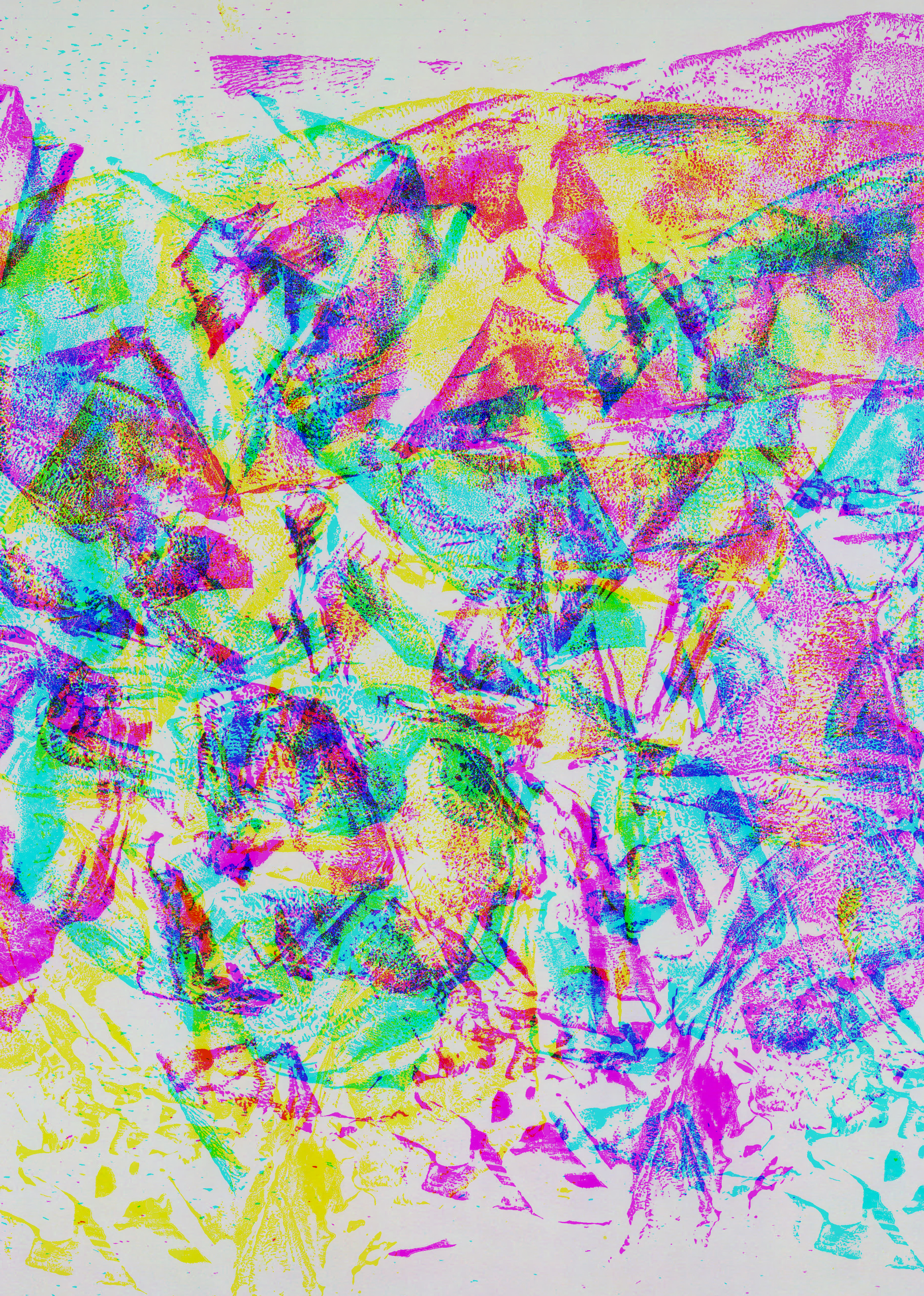 What Does Music Look Like? This question came to mind when I received the task of designing postcards related to music. At the start of the project, I created abstract prints using monotype techniques, focusing on various textures. I paid particular attention to the rhythm and mood of the music. I then refined these prints in Illustrator, Photoshop, and InDesign, with a special emphasis on color channels to represent different hues. Finally, one postcard was printed using offset printing with three color channels.