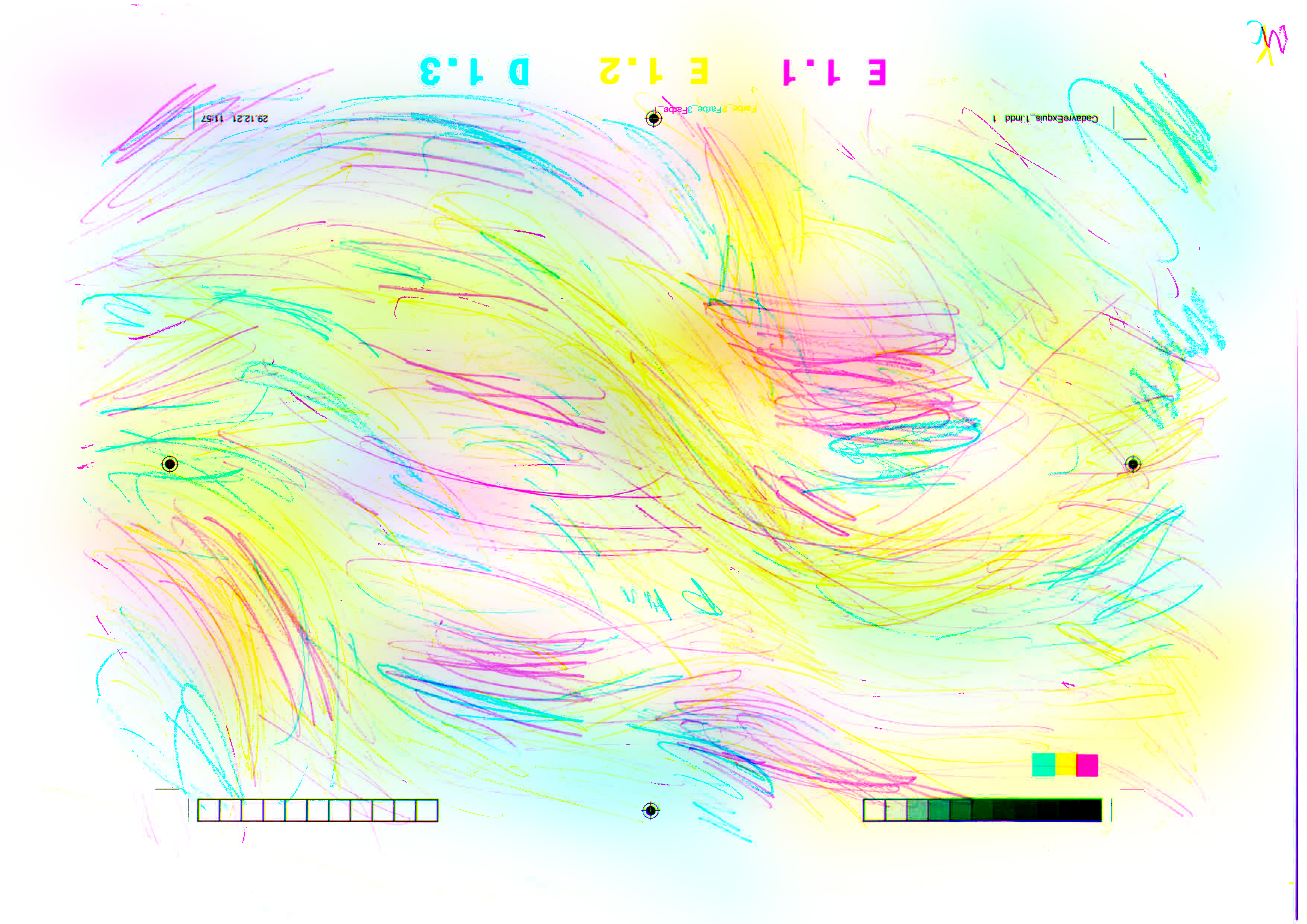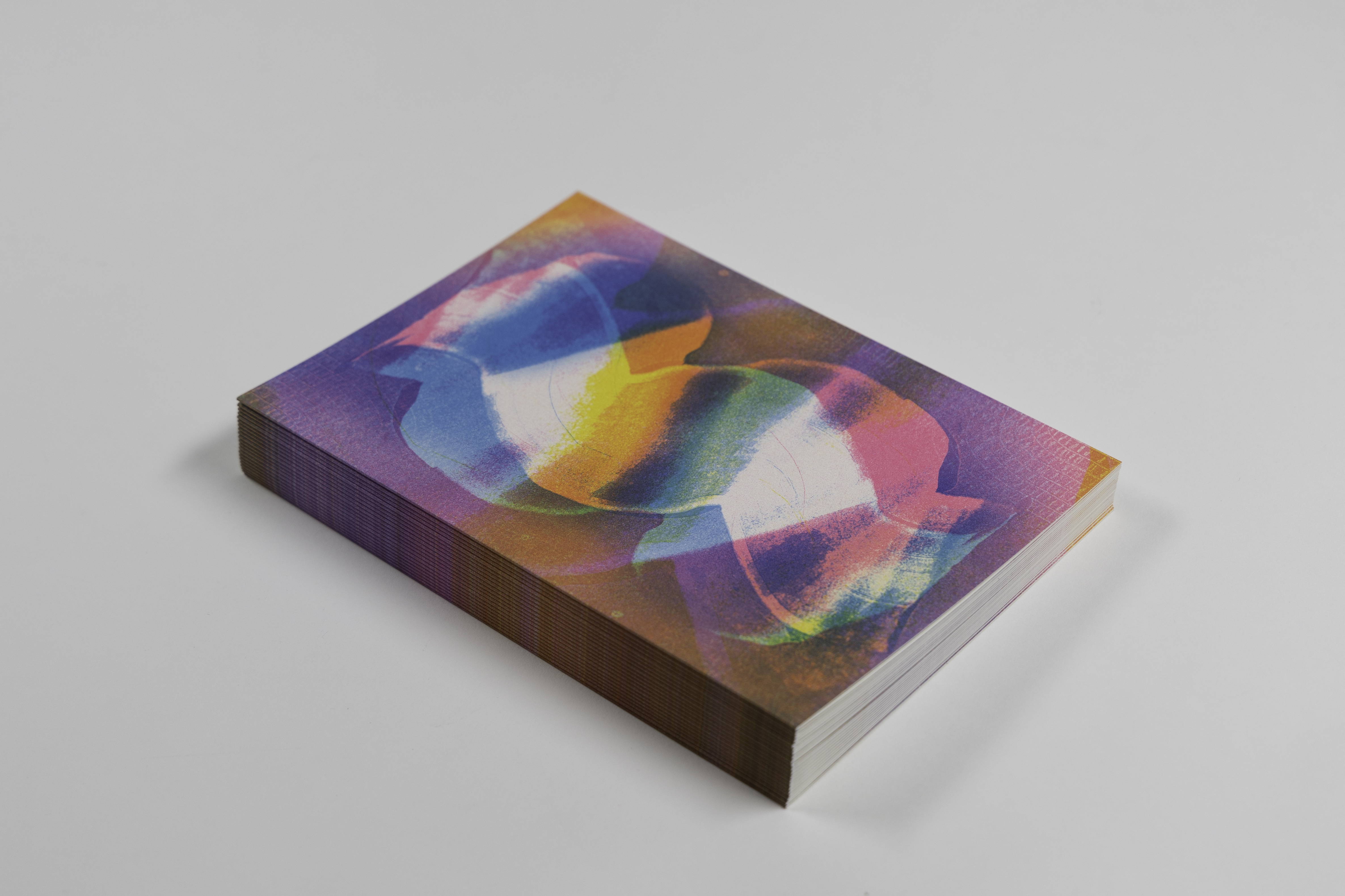 Wie sieht Musik aus? Diese Frage stellte ich mir, als ich den Auftrag erhielt, Postkarten mit Bezug zu Musik zu gestalten. Zu Beginn des Projekts habe ich mittels Monotypie abstrakte Drucke mit verschiedenen Strukturen erstellt. Dabei konzentrierte ich mich vor allem auf den Takt der Musik und die Stimmung. Diese Drucke habe ich anschliessend mit Illustrator, Photoshop und InDesign weiterbearbeitet. Dabei legte ich besonderen Wert auf die Farbkanäle, um verschiedene Farben darzustellen. Schliesslich wurde eine Postkarte im Offsetdruck mit drei Kanälen gedruckt.