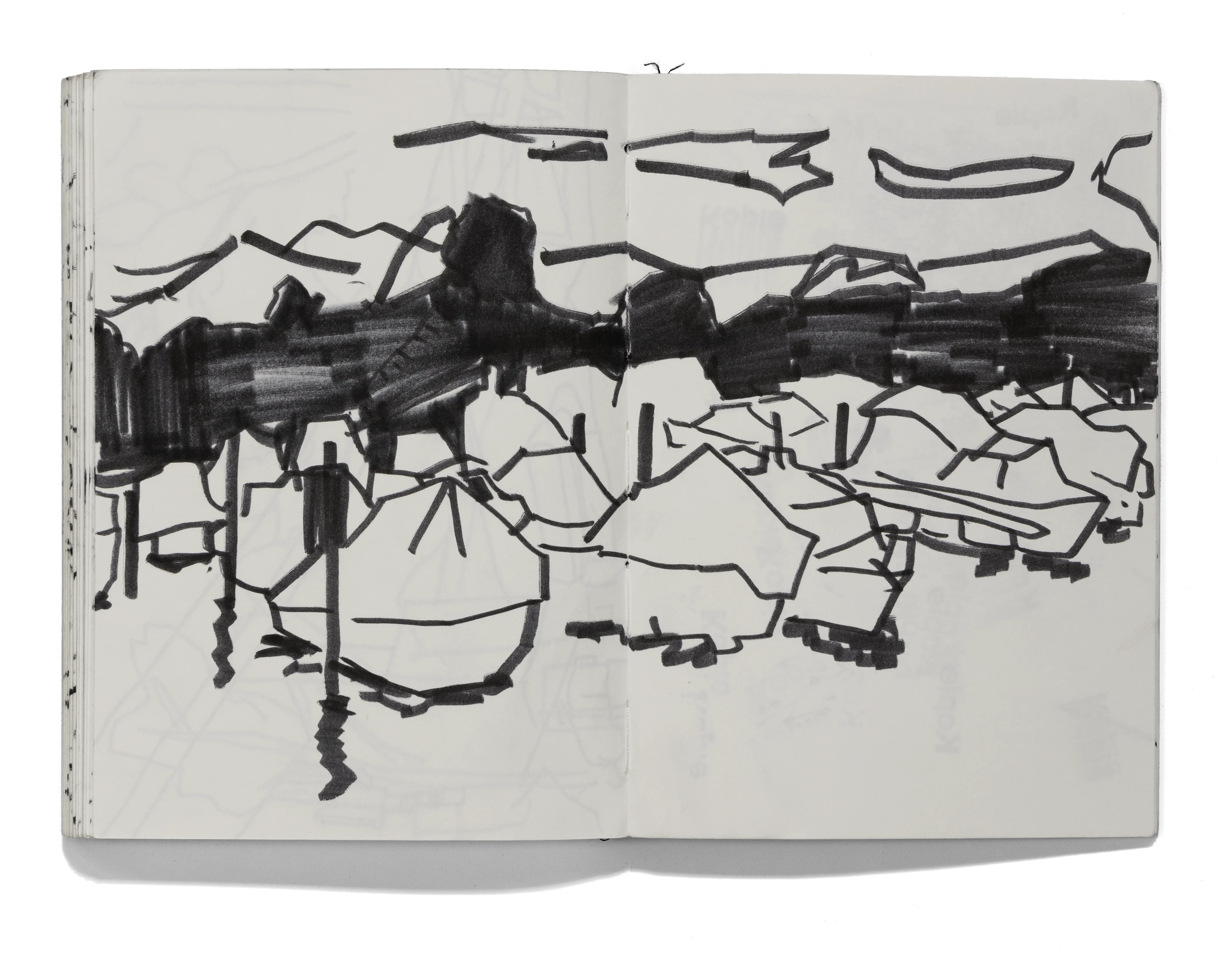 Whether at the train station or in a museum – a sketch can be done quickly. For just over three years, I’ve been keeping sketchbooks that I take almost everywhere. In a drawing course I took with Christof Fischer, I primarily learned to make abstract, angular, and quick sketches. I like that, unlike photography, it's not about precision but about the shapes that catch my interest. I particularly enjoy sketching scenes in public spaces with people, everyday objects, or humorous portraits.